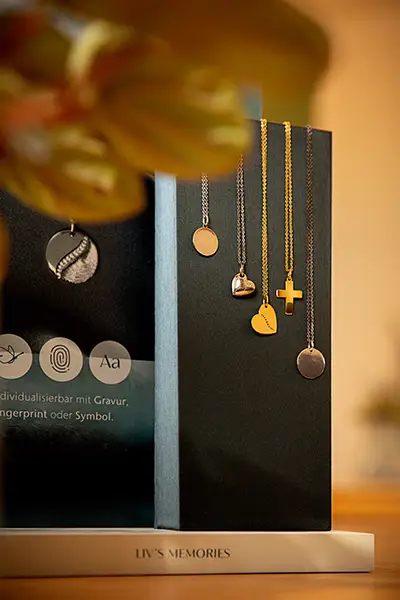 Mit den Gedenkstücken von LIV’S MEMORIES bleiben geliebte Menschen in besonderer Weise nah. Jedes Schmuckstück trägt eine persönliche Geschichte und wird mit Sorgfalt und Bedacht gefertigt – als Zeichen von Liebe, Erinnerung und Verbundenheit.